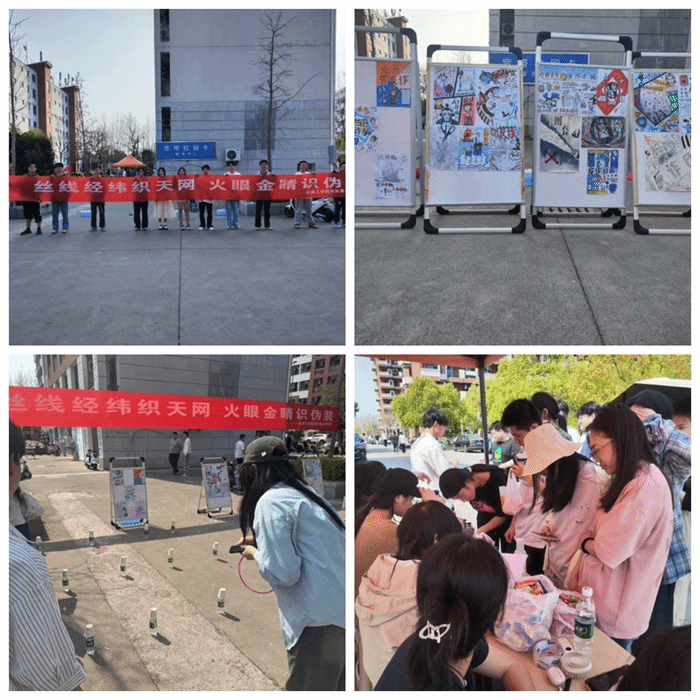 3月26日下午,“丝线经纬织天网,火眼金睛识伪装”主题反诈活动,在希望大道校区二期食堂门口举办,通过趣味套圈、情景问答等游戏,使同学们在轻松愉悦的氛围中,学习防骗防诈技巧。现场还准备了精美小礼品和小零食,不同等级奖项的设置,激发了同学们深入学习反诈知识的积极性。让他们在收获快乐的同时,也成长为了反诈知识的“行家里手”。