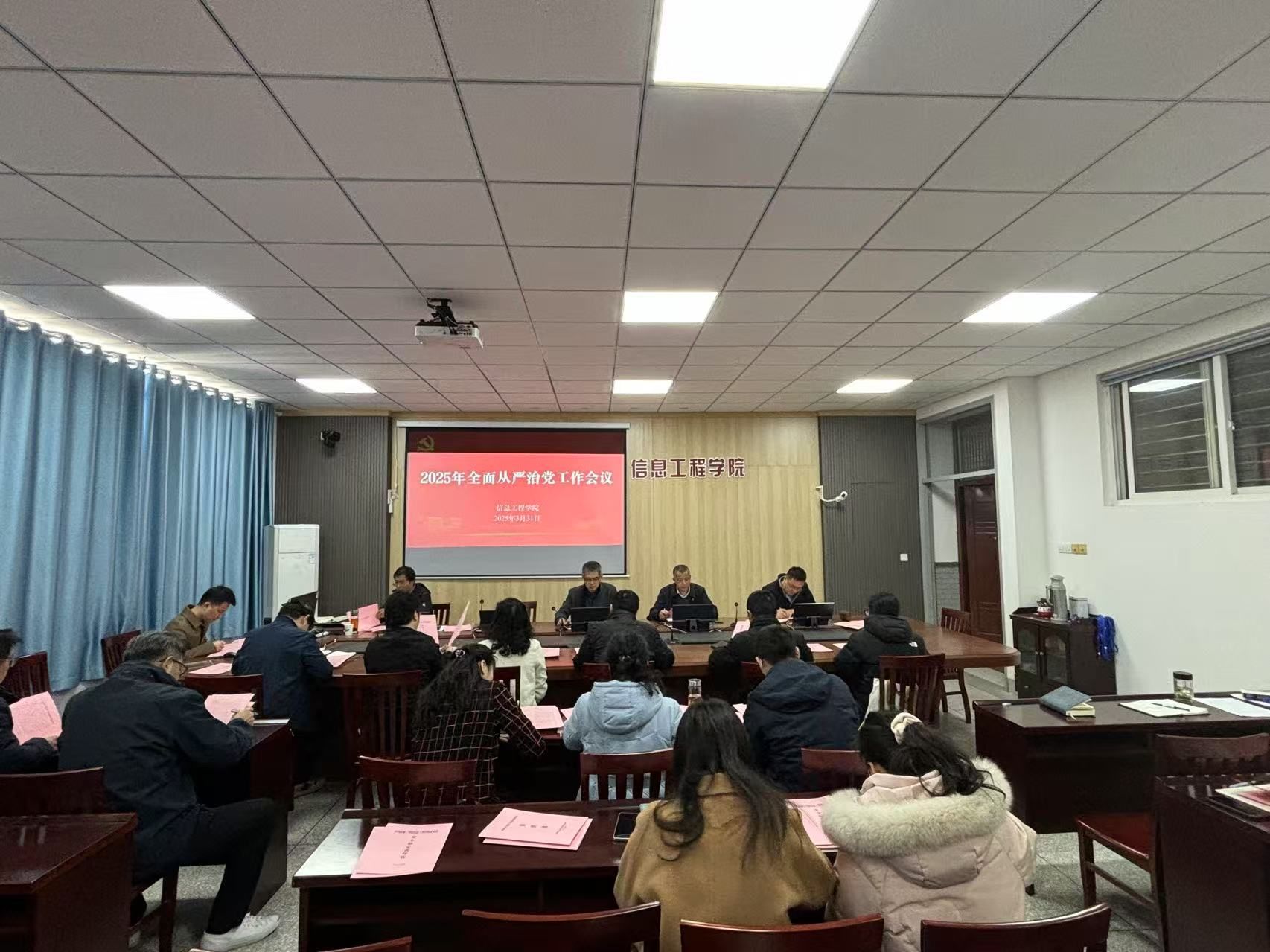 3月31日上午,信息工程学院在怀德楼B410会议室召开2025年全面从严治党工作会议,学院党委书记杨军主持。院长王如刚,副院长周锋,副书记、纪委书记王源,各科室、专业系、实验中心主任参加会议。