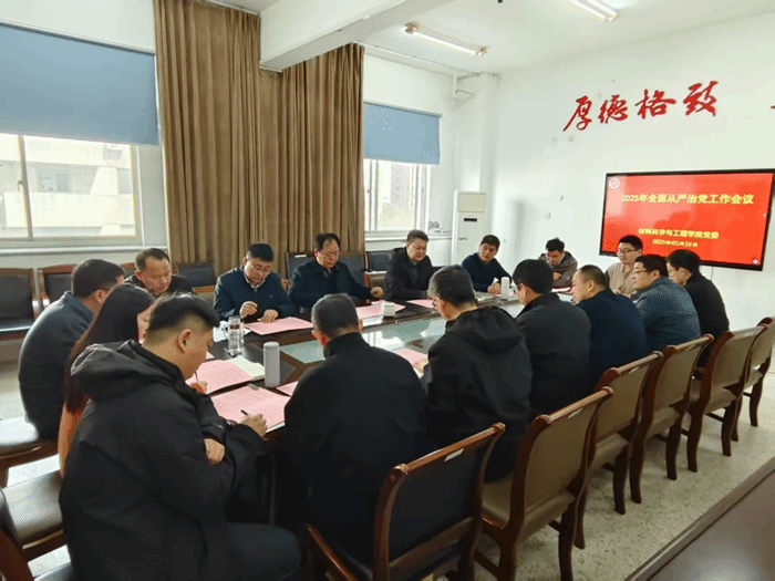 3月24日,材料科学与工程学院在北校区知达楼B314会议室召开全面从严治党工作专题会议,党委书记唐浩、院长罗驹华,副院长刘超、王金山,党委副书记温崇明,党支部书记、各科室、专业系和实验中心负责人等参加会议。
