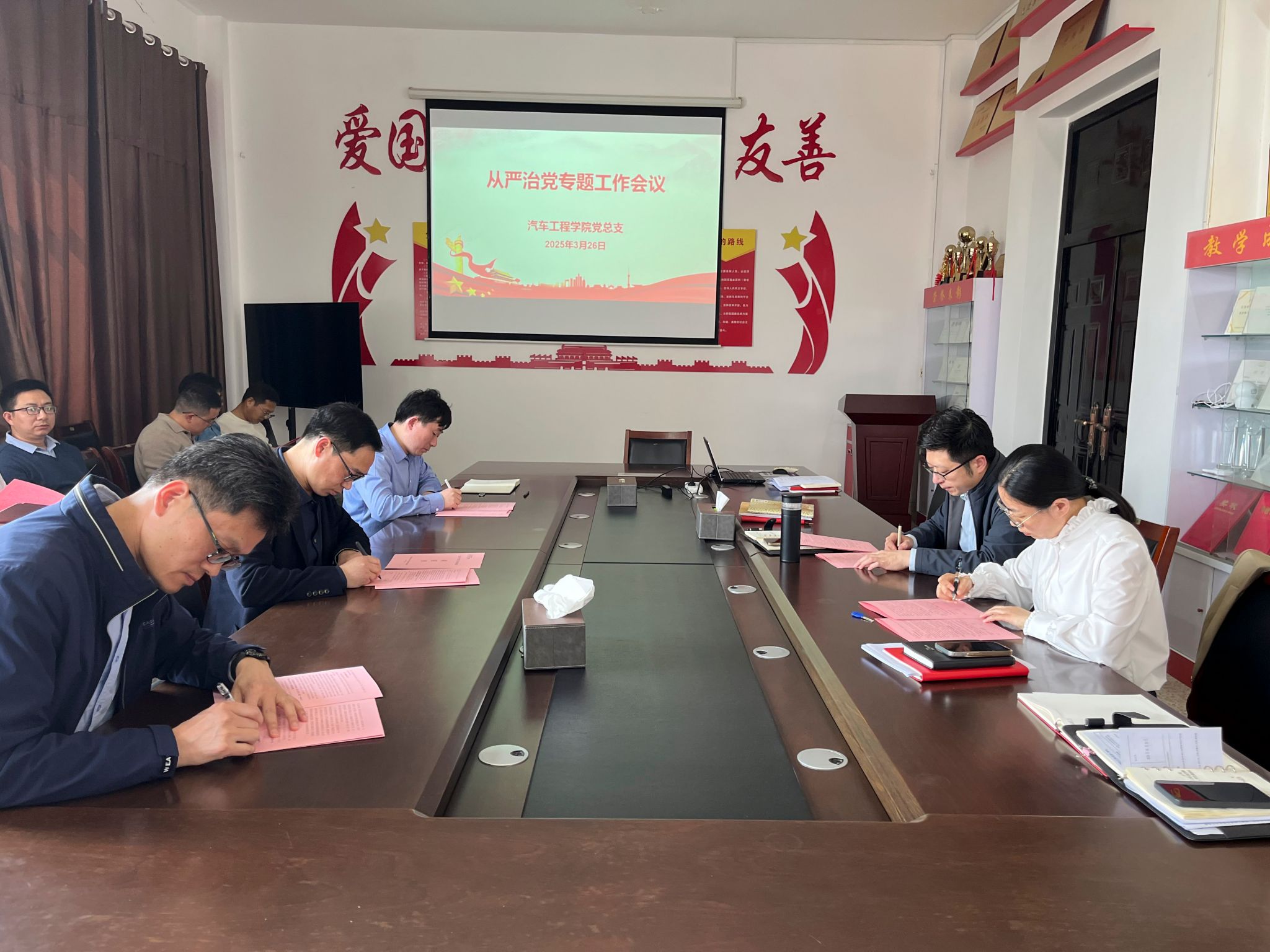 3月26日下午,汽车工程学院在机械馆A323会议室召开2025年全面从严治党工作会议。学院党总支书记陈青主持,学院全体科级以上干部、党支部书记、专业系(实验中心)主任参加会议。