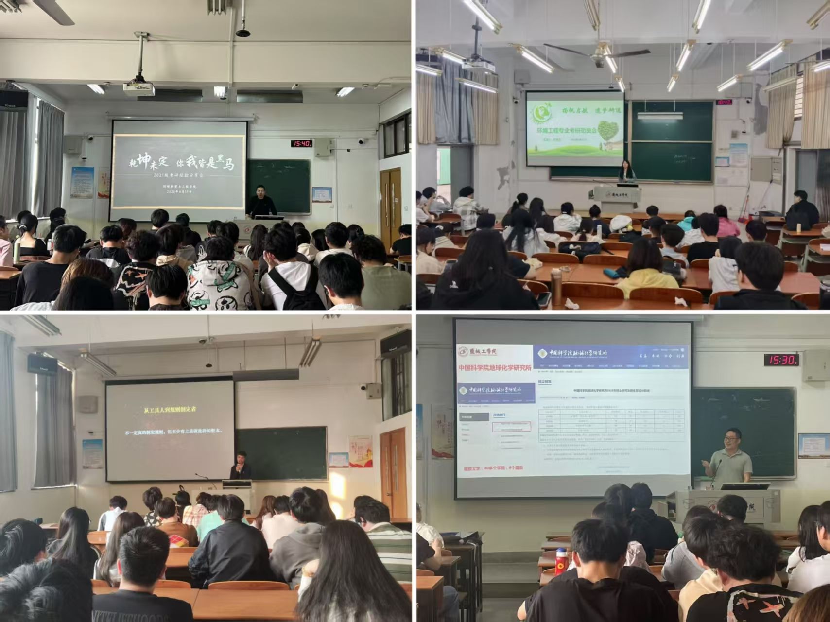 各专业系主任分别按照专业的特点,详细向同学们讲解研究生的报考流程及前景,建议合理选择考研目标城市和院校,并结合身边具体案例,介绍科研院所的硕士招生及录取分数线情况,鼓励同学们要勇于报考国内高水平科研院所。