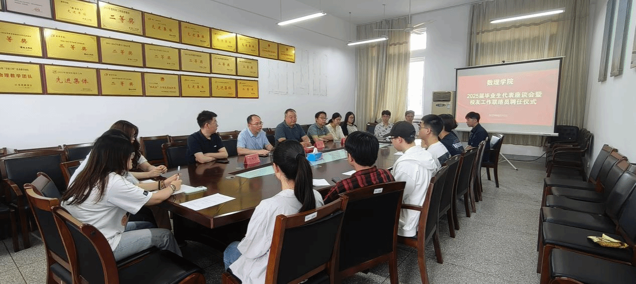 为倾听毕业生学习成长诉求,收集学院发展建议,搭建校友联络平台,6月11日下午,数理学院在博学楼B512举办2025届毕业生就业座谈会暨校友工作联络员聘任仪式。学院党总支书记魏伟华、院长徐宁、副院长田灿荣、院长助理左冬冬、学工办主任及2025届毕业生代表参加活动。