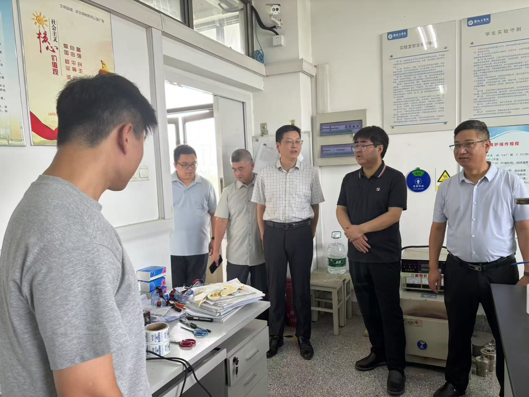 学院领导老师首先走访检查实验室,询问了解实验室开放使用、人员管理、值班值守及危化品使用管理等安全责任落实情况,同时叮嘱师生要时刻紧绷安全这根弦,提高安全意识,明确安全责任,严格遵守实验室规章制度,切实保障暑期实验室安全平稳运行。他们还看望了正在实验室学习工作的师生,关心了解师生在校生活、学习、科研等情况,重点询问研究生科研工作进度以及在科研工作中遇到的困难,鼓励大家充分利用假期潜心钻研,力争产出真人赌博游戏_澳门赌博网-app*官网高质量成果。