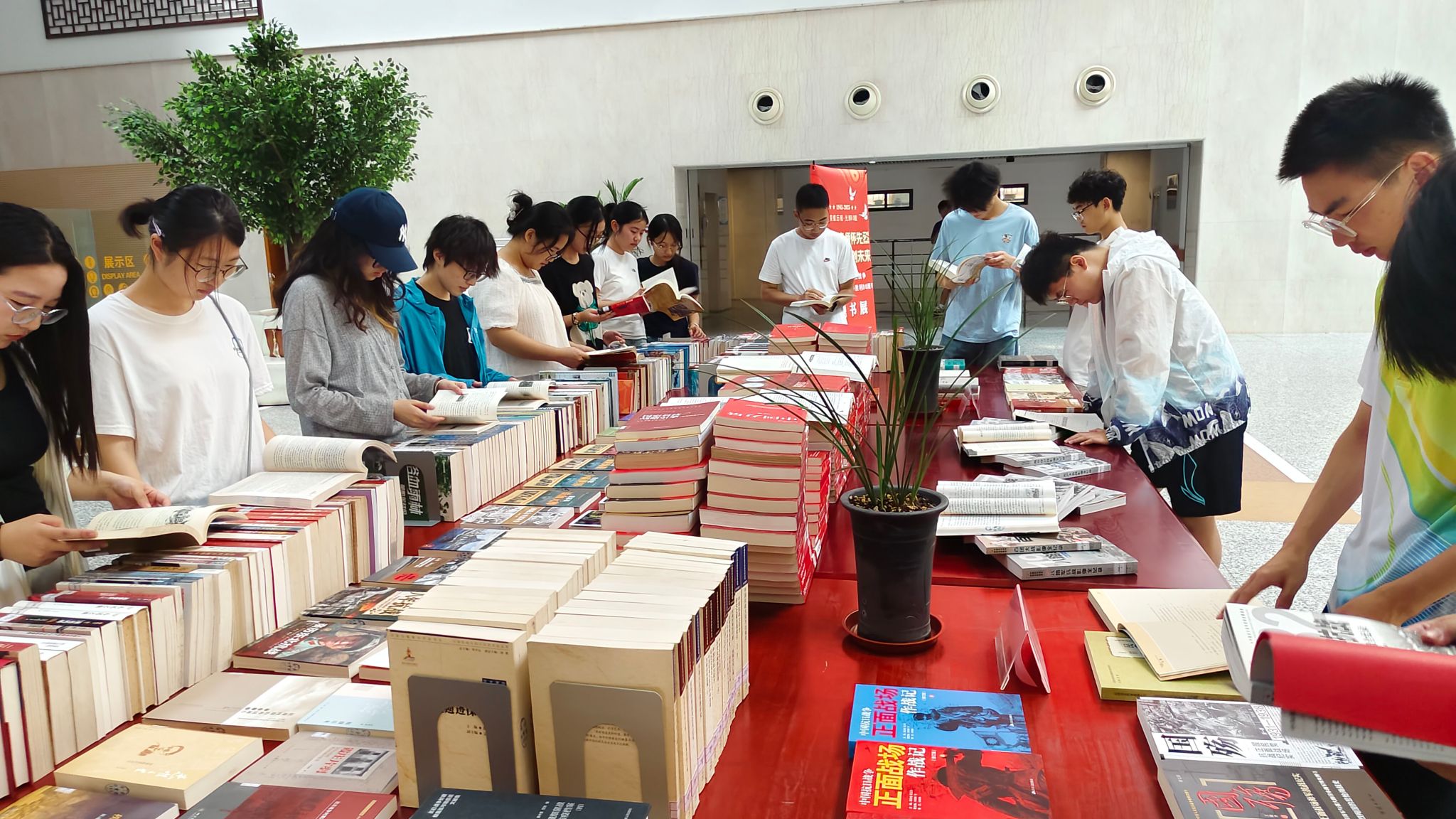 为铭刻中国人民抗日战争暨世界反法西斯战争的壮阔历史印记,传承红色精神谱系,厚植爱国主义情怀,9月5日,图书馆特别策划“纪念中国人民抗日战争暨世界反法西斯战争胜利80周年”主题书展,在希望大道校区图书馆二楼大厅拉开帷幕,共展出图书220余册。