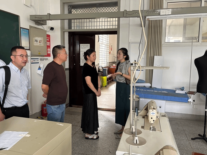 会前,陈海一行先后参观了纺织服装学院展厅以及服工专业工艺室等学生实训场地,对学院办学特色及实训课程建设进行了详细了解。