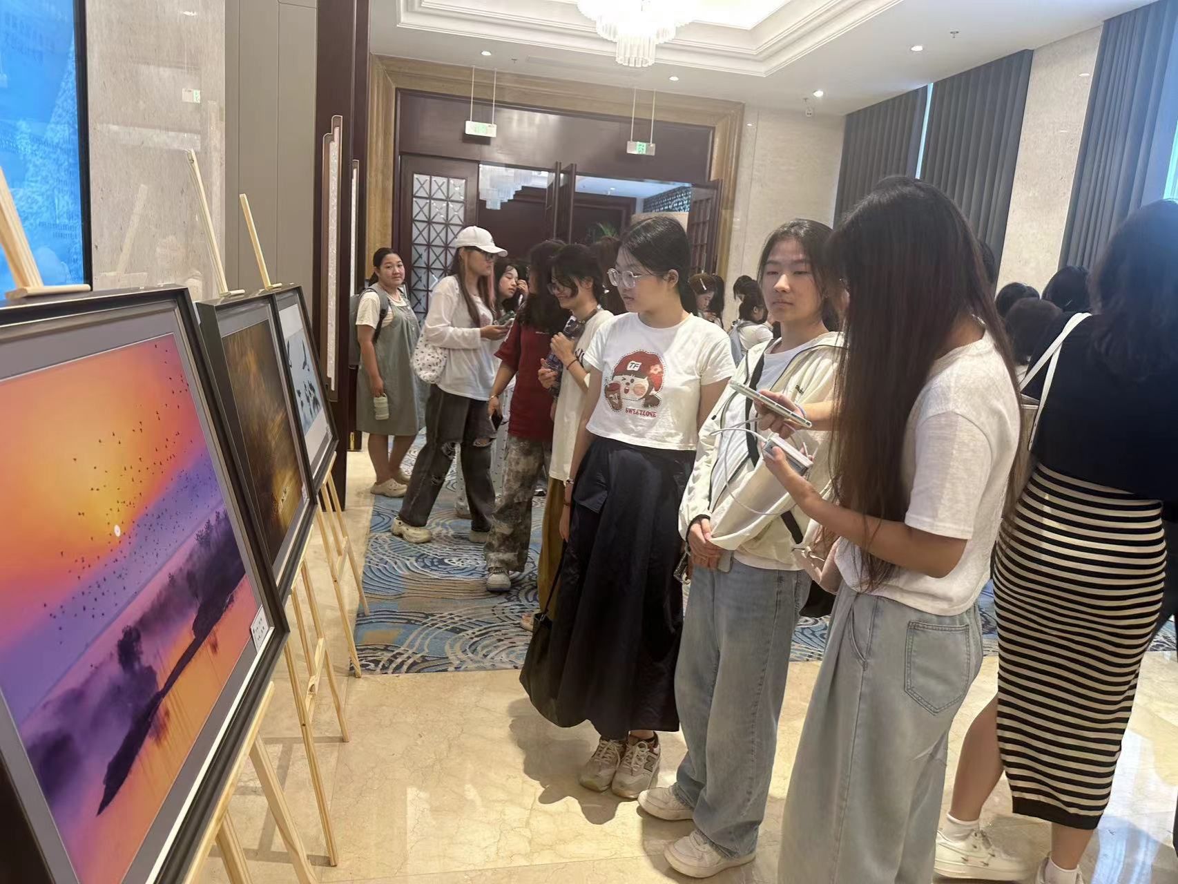 启动仪式上,张军与其他嘉宾共同启动了摄影作品展与文创大赛,并携与会师生参观了“盐城条子泥优秀生态摄影作品展”。一幅幅生动传神的生态摄影作品,尤其是聚焦于湿地鸟类的精彩瞬间,让师生们深刻感受到盐城自然生态的瑰丽与脆弱,激发了大家用艺术语言讲述生态故事、传递保护意识的创作灵感。
