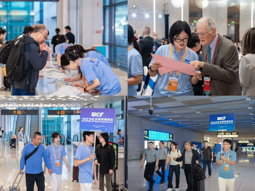 论坛期间,盐工志愿者们身着统一的“海洋蓝”会服,活跃在各个岗位。在盐城南洋国际机场和高铁站,交通接驳组志愿者手持引导牌,热情迎接来自全球的嘉宾,高效应对抵达时间分散、行程紧凑等挑战,提供无缝接驳服务。在开幕式、主旨论坛等核心活动现场,志愿者们承担了引导咨询、签到协助、设备保障等工作,以细致入微的服务确保各项议程有序推进。他们各司其职、协同作战,用实际行动诠释了“全力以赴”的服务态度。