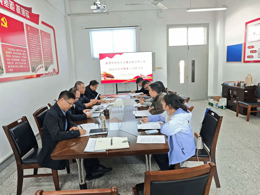 10月27日上午,数理学院党总支理论学习中心组在博学楼B503会议室召开10月份集体学习研讨会,深入学习领会习近平总书记在《求是》杂志上发表的《弘扬伟大抗战精神,向着中华民族伟大复兴的光辉彼岸奋勇前进》以及《锲而不舍落实中央八项规定精神,以优良党风引领社风民风》重要文章。会议由学院党总支书记魏伟华主持,党总支理论学习中心组成员参加学习。