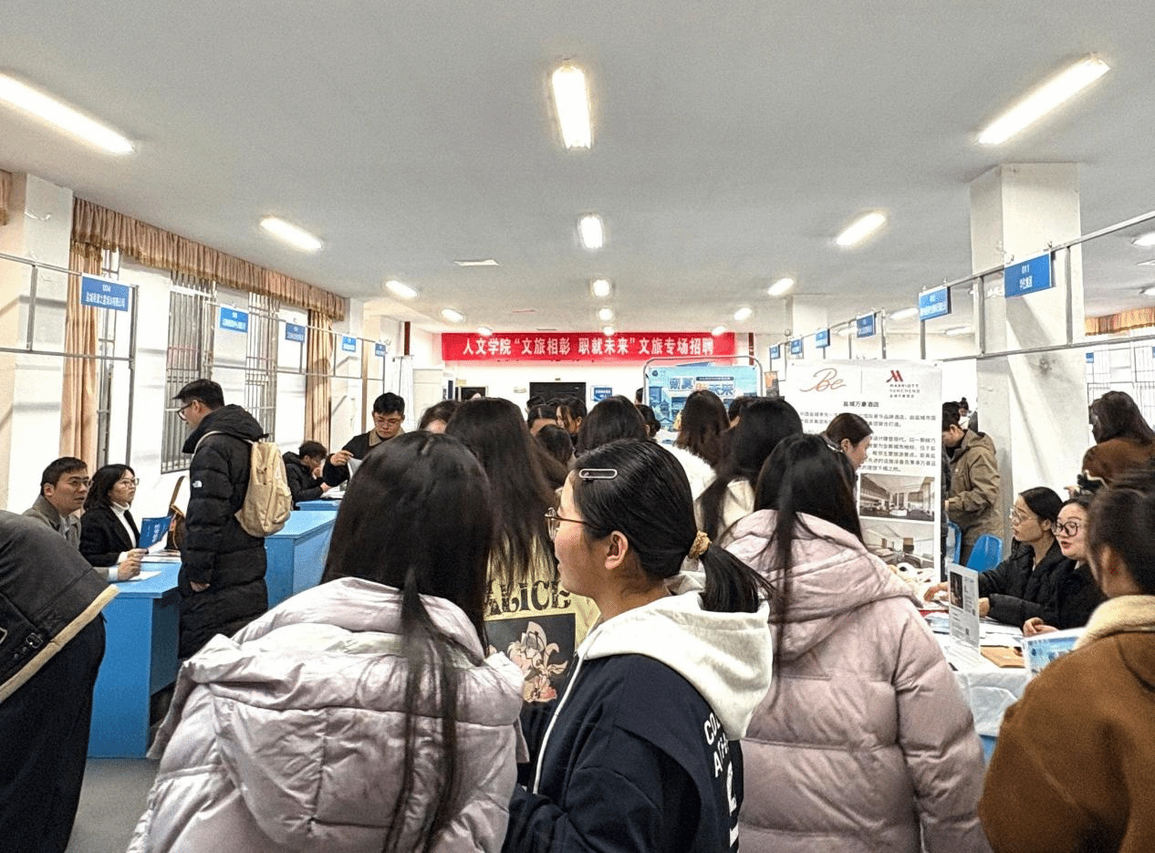 为切实做好2026届毕业生就业工作,搭建优质就业平台,11月26日下午,人文学院“文旅相彰 ‘职’就未来”2026届毕业生文旅专场招聘会,在希望大道校区大学生活动中心一楼就业市场顺利举办。人文学院党政领导、各科室负责人、毕业班辅导员以及2026届毕业生等300余人参加。
