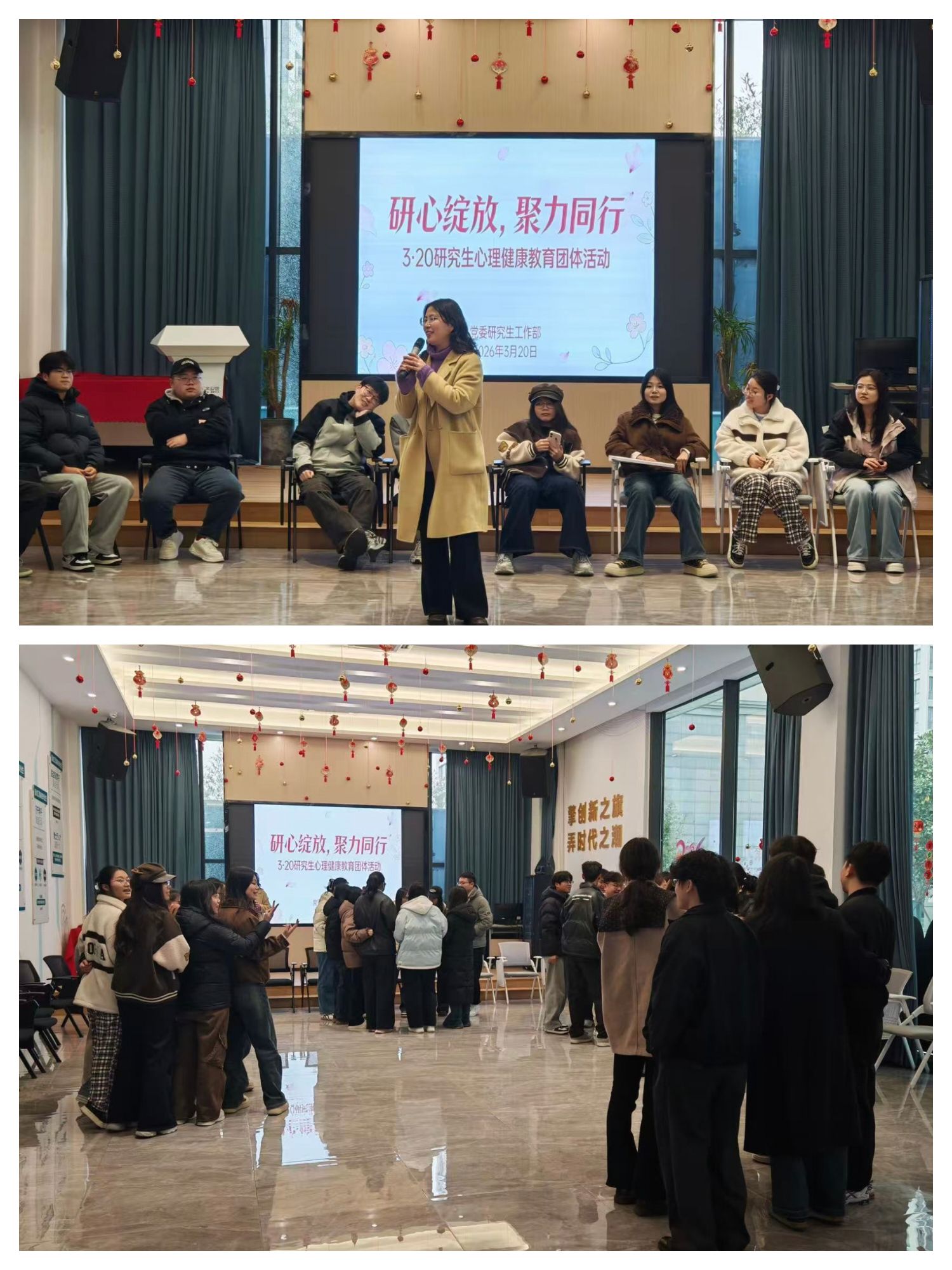 为推动研究生群体的交流互动,锻炼团队协作与沟通能力,培养积极乐观的健康心态,助力提升学习和科研效率,3月20日下午,党委研工部在盐龙湖校区研究生一站式社区举办了“研心绽放 聚力同行”3?20研究生心理健康教育团体活动。近50名研究生及研究生辅导员参加。