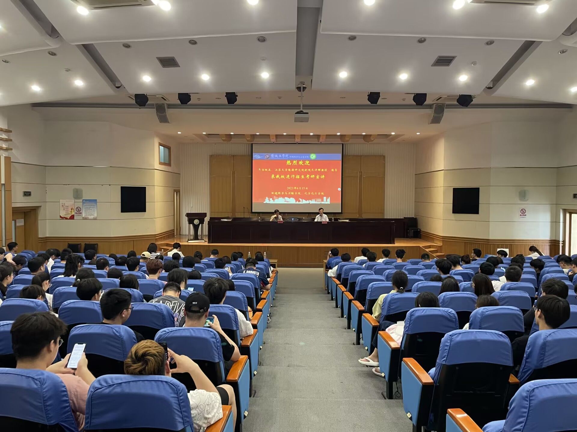 6月16日下午,江苏大学能源研究院党总支副书记、副院长何晓萍,副院长许晖一行5人来真人赌博游戏_澳门赌博网-app*官网为环境学院、化工学院作研究生招生宣传,宣讲会在北校区图书馆报告厅举行。会议由环境学院党总支副书记周政主持,化工学院应用化学系主任张蓓蓓,环境学院学工办主任沈丹,辅导员徐浩、王翔、相关专业考研学生等200余人参加。