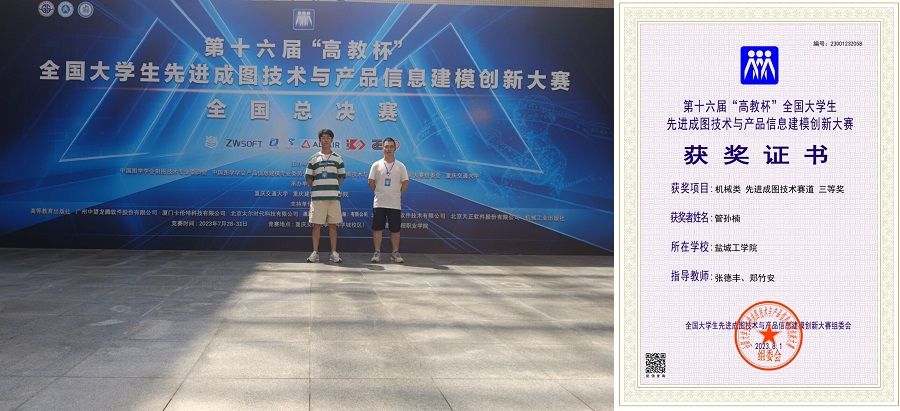 本次大赛分为机械类、建筑类、水利类和道桥类四个类别,共吸引了来自全国740所高校的1188支队伍参赛,参赛队伍及选手数量创下了历史新高。比赛主要围绕增材制造、轻量化设计、数字化创新设计、产品创新设计、BIM创新应用和桥梁数字化设计等赛道内容展开。经激烈角逐和评比,汽车工程学院学生管孙楠获得机械类先进成图技术赛道三等奖。