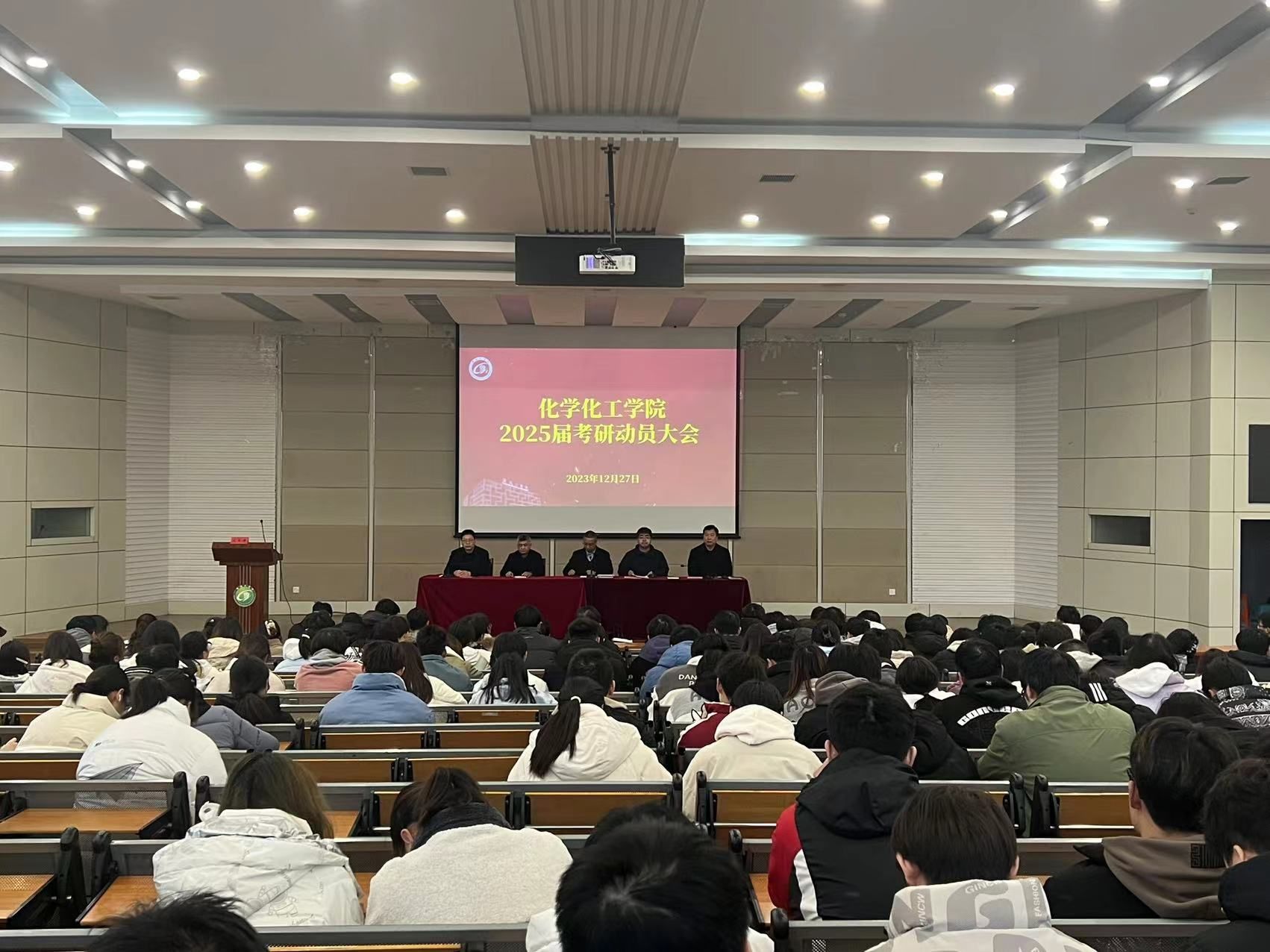 为帮助学生全面了解考研政策,引导学生提早规划、科学备考,营造浓厚的学习氛围,12月27日下午,化学化工学院在化工楼报告厅召开2021级学生考研动员大会。学院党委书记庞辉主持会议,院长戴勇、副院长祁刚、党委副书记江滔、副院长李红波出席,各专业系主任、全体专兼职辅导员、21级学生参加。