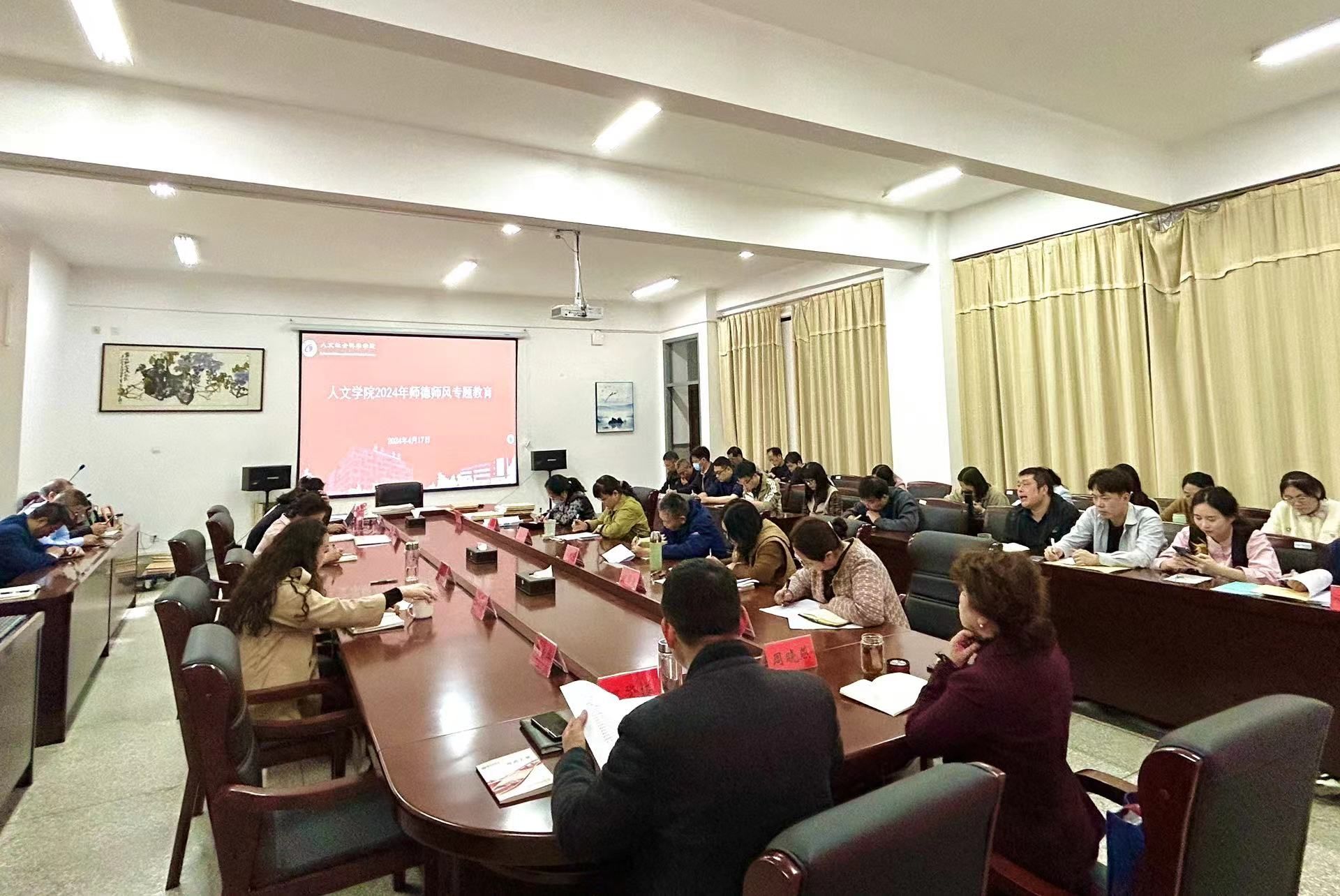4月17日下午,人文学院在南校区仁和楼A304会议室开展2024年师德师风专题教育。学院党总支书记何登溢主持,全体教职工参加。