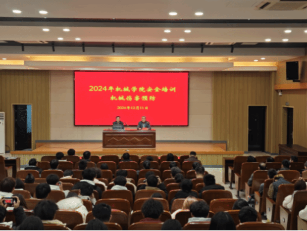12月11日,实验室建设设备管理处联合机械优集学院,在南校区机械馆报告厅举办2024年机械伤害预防安全主题教育活动,旨在深化师生对机械操作与实验安全的认知,筑牢安全防线,降低事故发生的可能性。设备处副处长姜瑞雨主持会议。设备处、机械学院相关领导,机械学院实验中心、模具中心、工培中心负责人、实验指导教师,2024级全体新生和机械学院新进教师等参加。